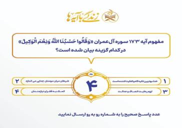 سؤال مسابقه پیامکی شماره چهار «زندگی با آیهها» با محوریت مفهوم آیه ۱۷۳ سوره آلعمران منتشر شد.