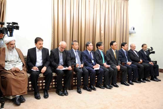 رهبر معظم انقلاب اسلامی عصر امروز (سه‌شنبه) در دیدار «ترانگ تان سانگ» رئیس‌جمهور ویتنام به زمینه‌های متنوع اقتصادی، فنّی، تجاری و فرهنگی در گسترش روابط دو کشور اشاره و خاطرنشان کردند: شجاعت و مقاومت ملت ویتنام و شخصیت های برجسته‌ آن نظیر «هوشی مینه» و «ژنرال جیاپ» در مقابل تجاوزگری بیگانگان، موجب شده است که ملت شما در چشم ملت ایران، محترم و معتبر باشد و این تکریم و همدلی، زمینه بسیار مناسبی برای افزایش همکاری هاست.