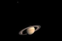حلقه ها و غبار اطراف سیاره زحل قابل رویت هستند ضمن اینکه «تیتان» بعنوان بزرگترین قمر این سیاره در قسمت بالای عکس شبیه به نقطه ای درخشان دیده می شود.