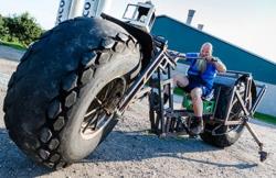 این دوچرخه غول پیکر دارای لاستیک هایی در مقیاس کامیون است ضمن اینکه به دو طرف چرخ عقب آن دو چرخ کمکی برای بر قراری تعادل به هنگام سوار شدن بر روی آن تعبیه شده است.