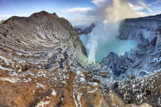 7 - کاواه ایجن ، اندونزی. کاواه ایجن که به زبان جاوه ای به مفهوم « دهانه سبز» است یکی از مراکز عمده استخراج گوگرد انونزی محسوب می شود. دریاچه فیروزه ای دهانه آن یک دریاچه اسیدی است که بخار آن برای افرادی که می خواهند به دریاچه نزدیک شوند مرگ آور است.