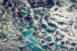 تصویری از ابرهایی موسوم به شش ضلعی را می بینید که دلیل اصلی جریان های شدیدی در این منطقه می شود که ناپدید شدن هواپیماها و کشتی های زیادی را رقم زده است.