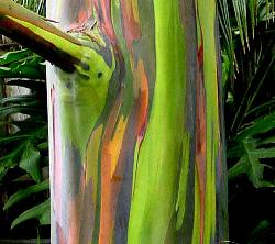 این درختان بلند و زیبا به نام اوکالیپتوس های رنگین کمانی یا صمغ رنگین کمانی شناخته می شوند. این درختان تنها نوع اوکالیپتوس هستند که پوست تنهی آن رنگین است. تنه ی آن ها به صورت غیر معمولی رنگی است و در نگاه اول فکر می کنید که شاید کسی آن را نقاشی کرده است.