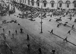 در روز 11 مارس سال 1917 ميلادي ، نيروهاي ارتش در مقابل 200 هزار تظاهركننده در شهر پتروگراد صف كشيدند.افسران به سربازان دستور دادند «قلب را هدف بگيريد» ، و آن روز 40 نفر از تظاهركنندگان به قتل رسيدند.