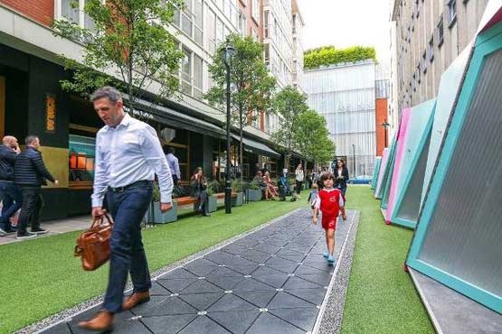 خیابانی در یکی از مناطق شلوغ و پرتردد لندن اکنون به محلی آرام و حافظ محیط زیست تبدیل شده که با استفاده از انرژی گام های رهگذران برق مورد نیاز خیابان تامین می شود.