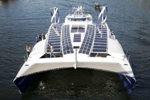 این قایق Energy Observer نام دارد و نه تنها به صفحات خورشیدی مجهز است بلکه توربینهای بادی و سیستم سلول سوختی هیدروژنی نیز دارد که انرژی کلی مورد نیاز در سفر ۶ ساله را تأمین می کنند.