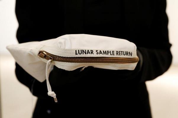نیل آرمسترانگ فضانورد آمریکایی در نخستین ماموریت ارسال انسان به ماه(۱۹۶۹میلادی) مقداری خاک ماه را  درون کیسه ای به زمین آورد.