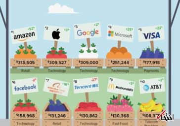 از آنجا که آمازون یک خردهفروشی محسوب میشود، بزرگترین بازیگران حوزه تکنولوژی همچنان اپل و گوگل به حساب میآیند. دراینمیان، برند اپل با اختلاف بسیار کمی و با ارزش ۳۰۹.۵ میلیارد دلار دربرابر ارزش ۳۰۹ میلیارد دلاری گوگل، عنوان باارزشترین نام تجاری حوزه فناوری را که سال گذشته در اختیار رقیبش بود، از آن خود کرده است.