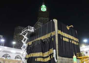 پس از اقامه نماز صبح در مسجد الحرام مسلمانان شاهد تعویض پرده کعبه بافته شده با حریر خالص و طلا بودند.