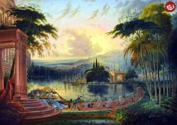 مینیاتور ایرانی از لحظۀ برخورد ملکۀ صبا با هدهد (فرستادۀ حضرت سلیمان)