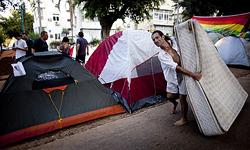 تصاوير ارسالي اعتراض تحصن كنندگان به افزايش قيمت مسكن و برپايي چادر در خيابانها را نشان مي دهد.