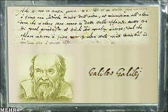پرتره و امضایی از گالیله در دست نوشته ای که به شرح اقمار مشتری میپردازد این کاوشگر را همراهی میکند