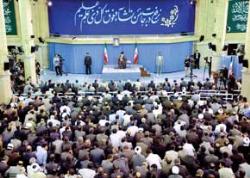 حضرت آيتالله خامنهاي پس از شنيدن و تأمل در سخنان استادان دانشگاه، سخنان مهمي در زمينه پيشرفت علمي كشور و نقش دانشگاهها و همچنين اهميت روز قدس بيان كردند.