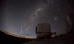 دنباله‌دار لاوجوی (LoveJoy) در آسمان بر فراز رصدخانه جنوبی اروپایی در شیلی می‌درخشد.