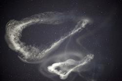 هر کدام از این راکتها که یکی پس از دیگری با فاصله 80 ثانیه پرتاب شدند، یک ردیاب شیمیایی را آزاد کردند تا این ابرهای شیری رنگ را در لبه فضا در فاصله 105 کیلومتری از سطح کره زمین ایجاد کنند.