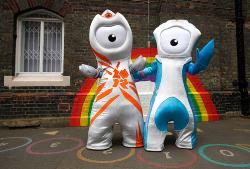 Wenlock عروسک نماد المپیک (سمت چپ) و Mandeville نماد پارا المپیک (سمت راست)