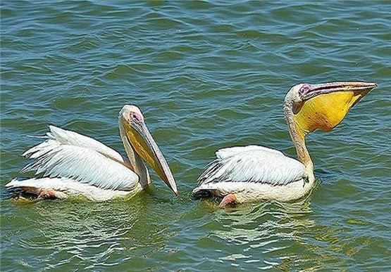 تصویر دو پلیکان سفید در دریاچه پارک ملی جوج سومین پارک حیات وحش پرندگان جهان در سنگال
