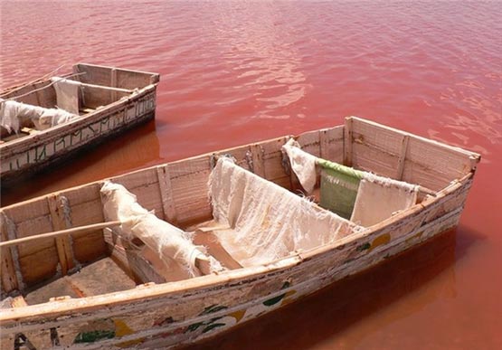 دریاچه «ریتبا» در سنگال برخلاف تمام دریاچههای دنیا رنگی شبیه به رنگ توت فرنگی دارد.