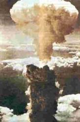 ابري قارج مانند ، پس از بمباران اتمي از شهر برخاست. پس از انفجار، برق بدون صدايي زده شد و نوري چندين برابر خورشيد ساطع گرديد