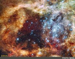از چپ به راست: سحابي رطيل و خوشه ستاره اي R136