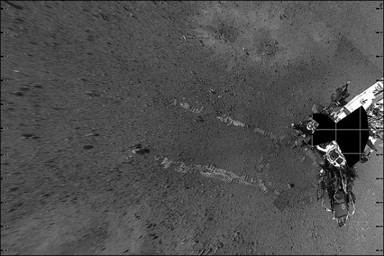 نمای بالایی از نخستین حرکت کنجکاوی روی چرخهای خود