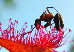 شيره قندي كه اين نوع گياهان ترشح مي‌كند، حشرات را به سمت گياه جلب مي‌كند. با قرار گرفتن حشره روي گل‌ها، آنها كم‌كم جمع مي‌شود.