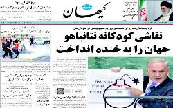 رسانه هاي خارجي اقدام نخست وزير رژيم صهيونيستي در نمايش يك نقاشي كودكانه در سازمان ملل براي توضيح خطرناك بودن فعاليت هاي هسته اي ايران را به سخره گرفتند.