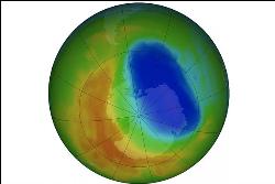 در این تصویر که توسط ناسا در تاریخ 24 اکتبر 2012 منتشر شده، یک نما با رنگهای غیر واقعی از لایه ازن بر فراز قطب جنوب به چشم می خورد. رنگهای بنفش و آبی در نقاطی به نمایش در آمده است که کمترین میزان ازن وجود دارد و رنگهای زرد و قرمز در جایی قرار دارد که ازن بیشتری در آن وجود دارد