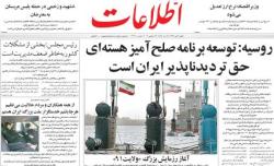 سرگئي لاوروف وزير امور خارجه روسيه بر موضع کشورش مبني بر حق مسلم جمهوري اسلامي ايران براي اجراي برنامه هسته اي صلح آميز تاکيد کرد.