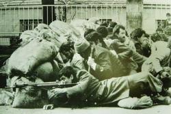 •دهها هزار تن از مردم در خیابان فرحآباد، پشت کیسههای شن و خاک سنگر گرفتند.
