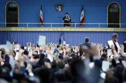 وقتي اعلام كردند كه "آقا" تشريف آوردند مثل اينكه روز محشر شده و اشك همه از شوق ديدار از گونه هايشان سراريز شد و همه شعار زيباي «اين همه لشكر آمده به عشق رهبر آمده» را فرياد مي زدند و نهيبي بزرگتر نيز به دشمنان ميدادند.