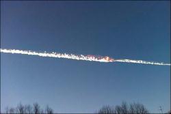 توضیح عکس: نمای فروسرخ دوربینهای ثبتشده روی ماهواره هواشناسی MeteoSat-9 از رد شهابسنگ برفراز کوههای اورال روسیه
