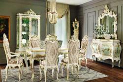 دور این میز مستطیلی شکل صندلی هایی چیده شده که دیدن آن، تصاویر موجود در کاخ سعدآباد را به ذهن می آورد. پشتی بلند با پایه های قوس دار.