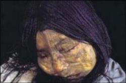 این دختر با روسری از جنس پر که روی موهای بافته شده کشیده شده بود در سال 1999 در کنار دو کودک دیگر کشف شد.
