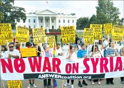 صدها نفر از مردم نيويورک در ميدان تايمز اين شهر تجمع کردند و ضمن مخالفت خود با جنگ در سوريه اعلام کردند باراک اوباما هيچ مدرکي براي اثبات ادعاهاي خود عليه بشار اسد ندارد.در بيانيهاي که توسط معترضان منتشر شده، آمده است؛ آنها ميخواهند با انتشار دروغ استفاده از سلاحهاي کشتار جمعي، جنگي ديگر راه بيندازند.