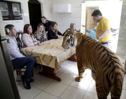خانواده برزیلی با هفت ببر در خانه‌شان زندگی می‌کنند. پدر این خانواده ۸ سال پیش برای نجات ۲ ببر آنها را از سیرک گرفت و به خانه آورد و حالا تعداد آنها به ۷ رسیده است.