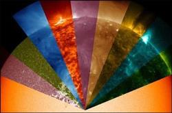 رصدخانه دینامیک خورشیدی طول موجها را به یک تصویر تبدیل می کند که برای چشم انسان قابل مشاهده باشد و نور آن به رنگین کمانی از رنگها تبدیل شده است.