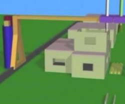 ابتدا روی قطعه زمینی که از پیش هموار شده، دو قطعه ریل با فاصله اندکی بیشتر از طول خانه به صورت موازی در برابر هم قرار می گیرند سپس یک جرثقیل مجهز به یک دهانه بتون ریز و نیز یک بازوی ویژه برای قراردهی قطعات در جای خود روی ریل سوار می شود.