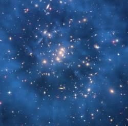 بر اساس مدل کیهان شناختی استاندارد، کهکشان ها در یک شبکه کیهانی از ماده تعبیه شده اند که حدود چهار پنجم آن را ماده تاریک نامرئی تشکیل می دهد.