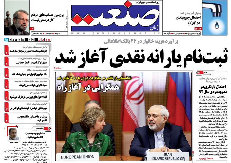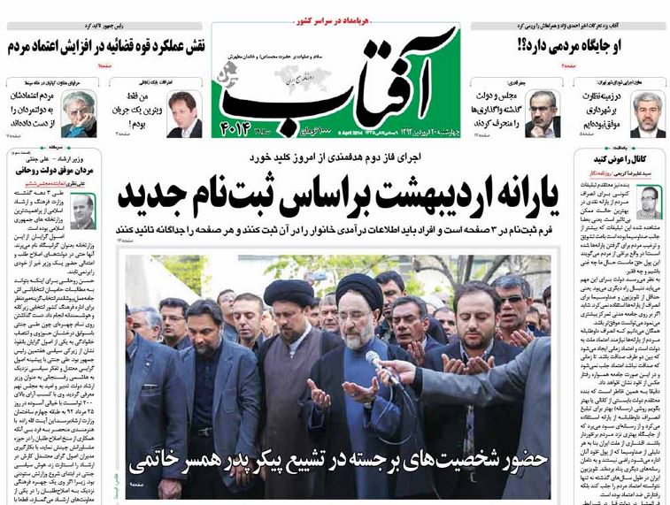 صفحه اول روزنامه های امروز چهارشنبه 20 فروردین