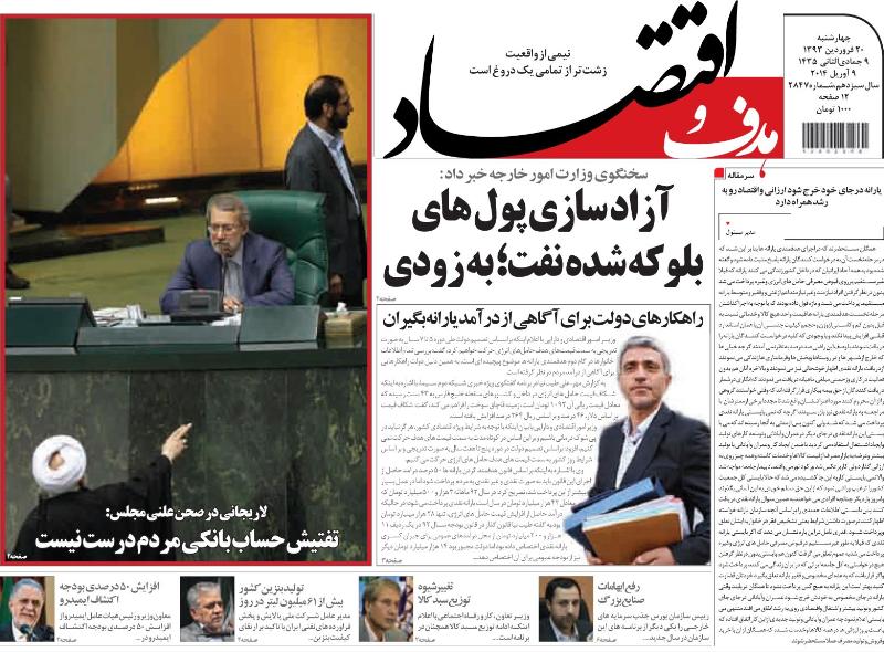 صفحه اول روزنامه های امروز چهارشنبه 20 فروردین.