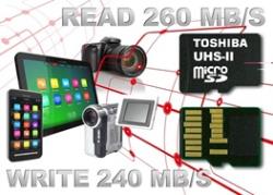 نسخه 32 گیگی توشیبا از سری موسوم به UHS-II microSD سرعت خوانشی معادل 260 مگابیت بر ثانیه و سرعت نوشتنی معادل 240 مگابیت بر ثانیه را داراست.