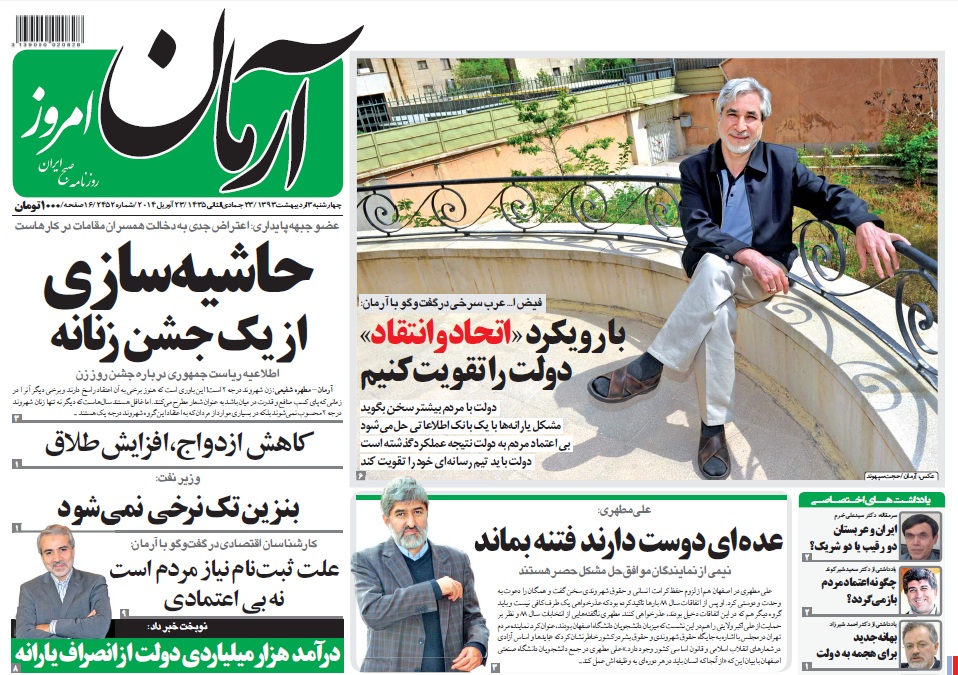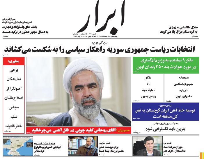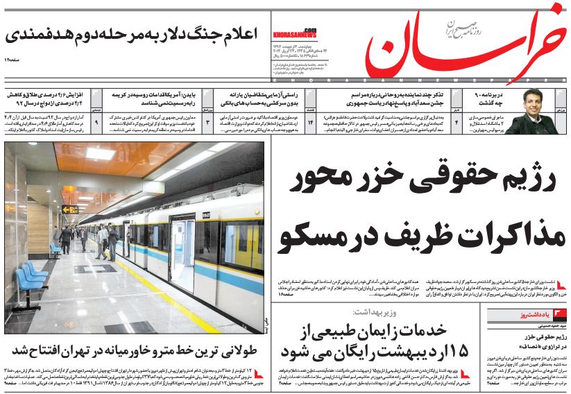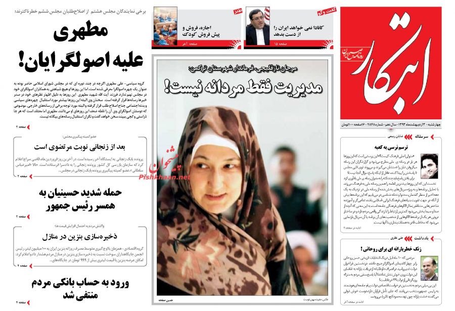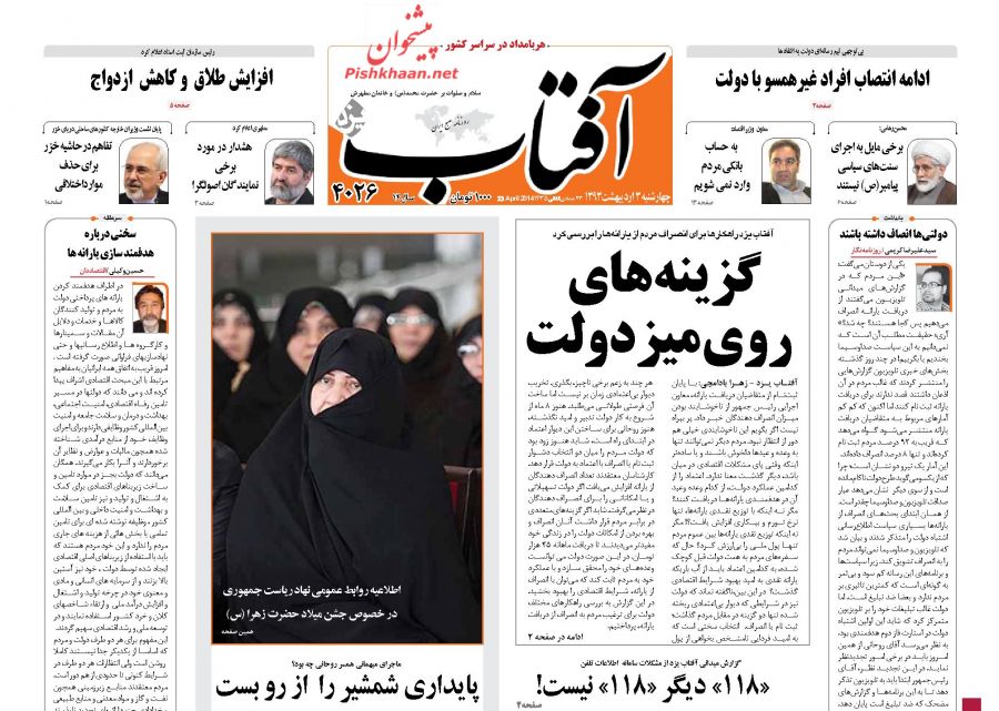 صفحه اول روزنامه های چهارشنبه سوم اردیبهشت