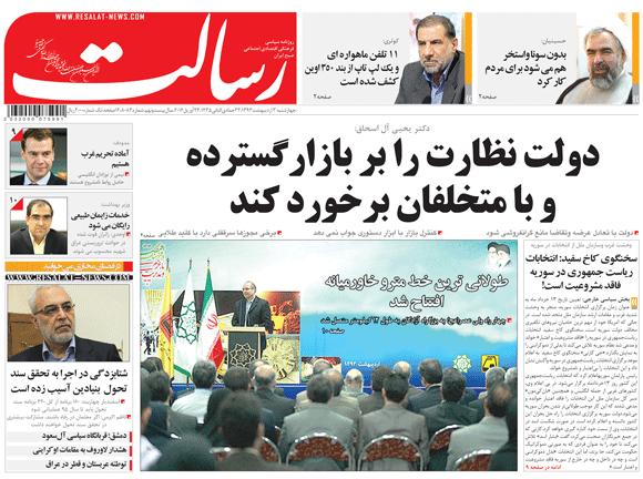 صفحه اول روزنامه های چهارشنبه سوم اردیبهشت...