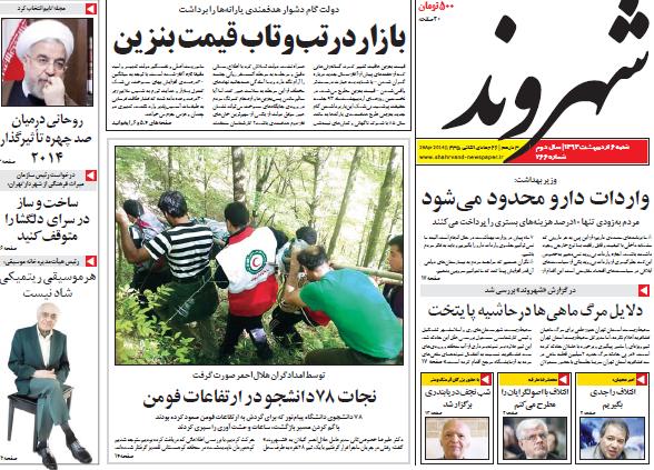 صفحه اول روزنامه های امروز شنبه ششم فروردین