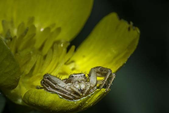 عنکبوت جهنده روی یک گل در کمین شکار.