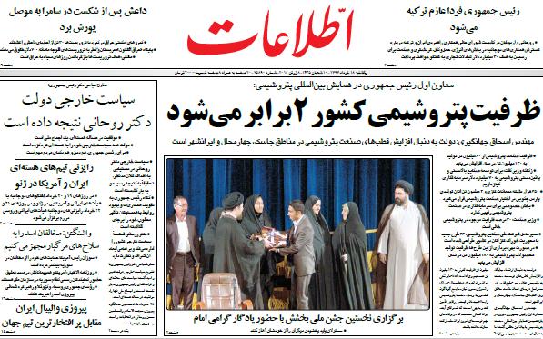 صفحه اول روزنامه های امروز یکشنبه 18 خرداد