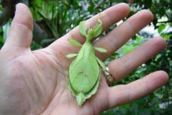 حشره بزرگی به سختی از برگ درختان تشخیص داده می شود و حتی خود حشره شناسان در تشخیص در تشخیص این حشره از برگ درختان دچار مشکل می شوند.