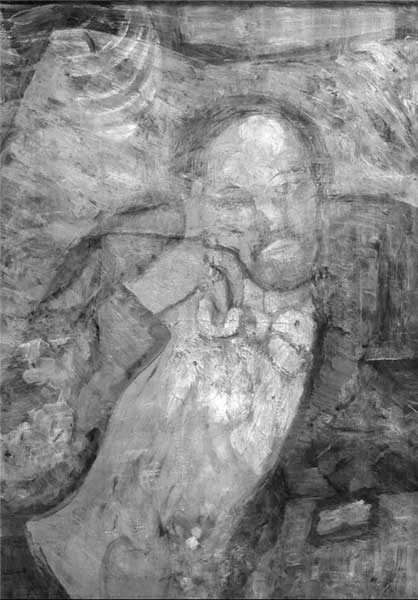 در سال 2008 کارشناسان بوم با دوربین تصویر برداری مادون قرمز عکس گرفتند؛ در آن زمان تصویری از یک مرد قد بلند با ریش و پاپیون را مشاهده کردند؛ در عکس های مادون قرمز سر مرد را که به حالت تفکر بر روی دست قرار گرفته بود و در حال استراحت بود را مشاهده کردند.