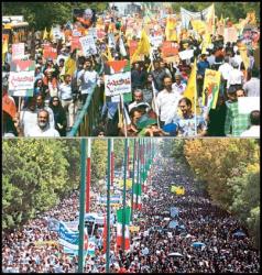 مردم روزه دار لرستان با حضوري گسترده و کم نظير، انزجار خود را از کشتار بيرحمانه مردم فلسطين و سکوت مدافعان دروغين حقوق بشري را در برابر اين فجايع فرياد زدند. روزه داران هرمزگاني اززن و مرد و شيعه و سني با وجود گرماي 40 درجهاي هوا با شركت در راهپيمايي، جلوهاي ديگر از حمايت ايرانيان از آرمانهاي شهداي غزه را به نمايش گذاشتند. خيابانهاي ايلام ديروز مملو از جمعيت انبوه روزه داري بود که در روز جهاني قدس رهايي قدس شريف و نابودي اسرائيل را فرياد زدند. دراستان آذربايجان شرقي هم مردم ديندار وولايتمدار در پاسخ به دعوت رهبر فرزانه انقلاب اسلامي، با حضور باشكوه درراهپيمايي روز قدس فرياد آزادي خواهي براي مسلمان فلسطين را سردادند.
